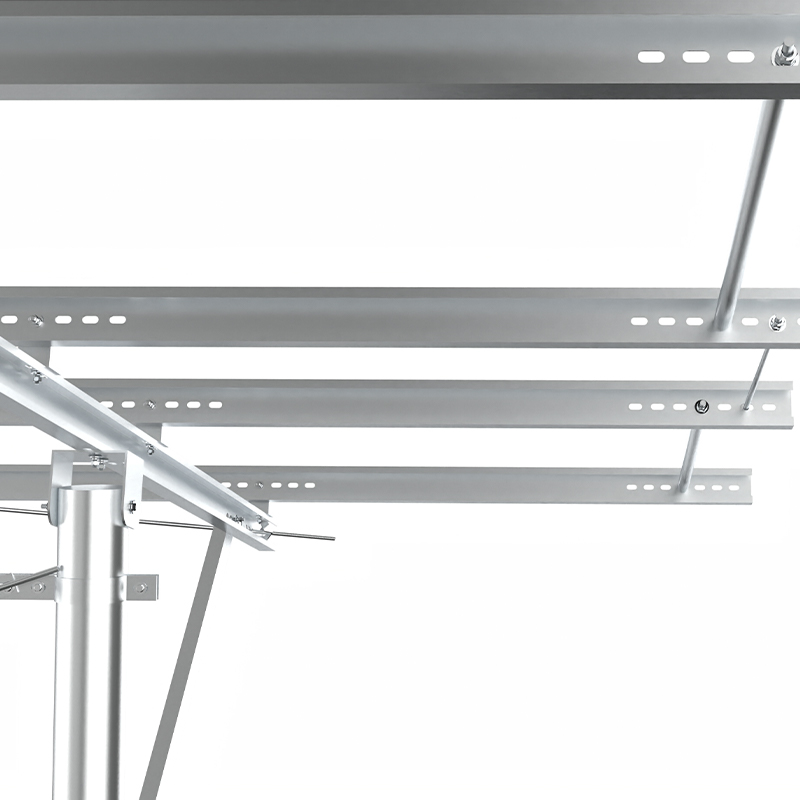 Il montaggio fotovoltaico a colonna singola utilizza colonne indipendenti come supporto centrale, con una struttura semplice e materiali economici, adatti a pendii bassi o terreno piatto. Con una forte resistenza alla corrosione e il rinforzo del tutore diagonale migliora la capacità di resistere ai venti laterali. È adatto per le centrali elettriche a terra o progetti distribuiti di piccole e medie dimensioni, ed è sia economico che facile da installare, specialmente adatto per scene con luce uniforme e basso carico di vento.